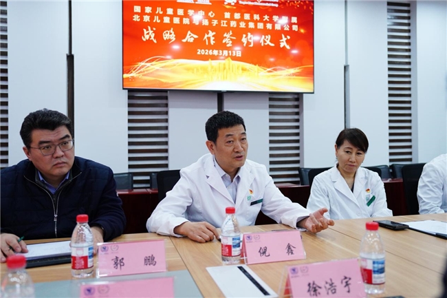 倪鑫表示,儿童用药研发不能靠单打独斗,必须走医产协同、融合创新之路。北京儿童医院作为我国儿科领域的“国家队”,始终坚守“一切为了孩子健康”的初心,在疑难重症诊疗、科研创新转化、学科建设与人才培养等方面持续发力,致力于推动儿科医疗服务高质量发展。此次与扬子江药业集团携手,旨在深入贯彻落实“健康中国”战略,搭建医产协同创新平台,共筑儿童健康坚实防线;同时也是院企优势互补、资源整合的重要举措,期待通过双方协同,破解儿童用药研发、临床应用等领域的痛点难点,让优质医疗与产业资源更好地惠及广大患儿。