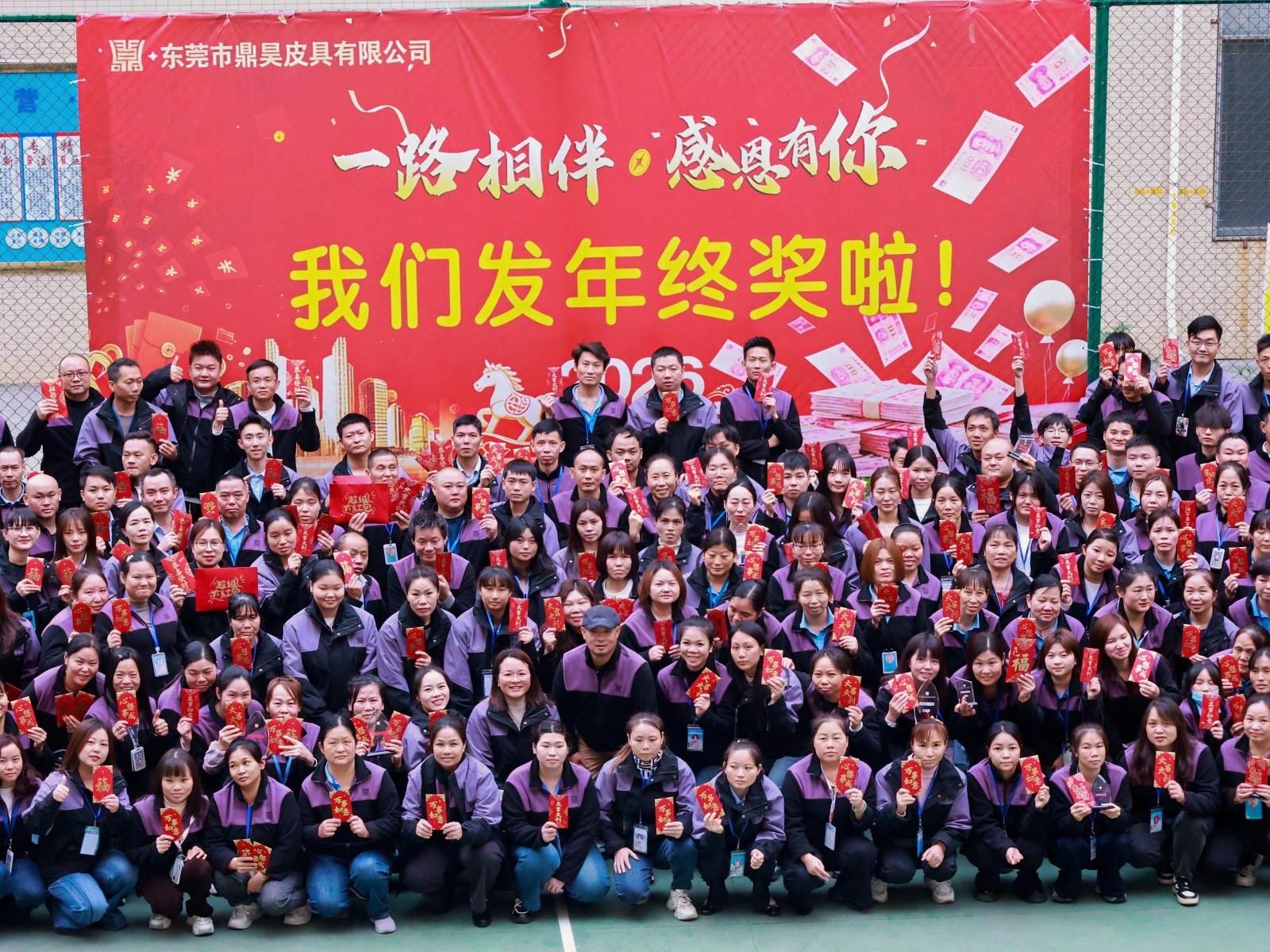 2026年[2月9日],东莞 —— 在行业寒冬的萧瑟中,一股暖流正在东莞市鼎昊皮具有限公司的厂区内涌动。近日,一则消息在鼎昊员工的朋友圈刷屏:老板自掏腰包,为全体员工发放总额高达128万元的年终奖金。这一反常态的“逆行”之举,将鼎昊一直倡导的“家文化”诠释得淋漓尽致。