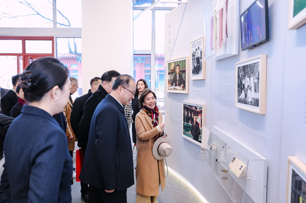 李兆基博士长女、恒基兆业地产有限公司租务部高级总经理李佩雯(左三),北京大学党委书记、教育基金会理事长何光彩(右三)等嘉宾共同为展览揭幕