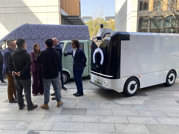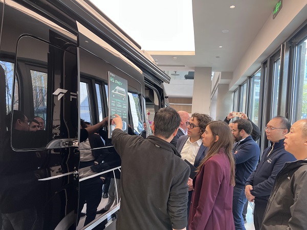 会谈伊始,代表团参观了新吉奥上海展厅及展车区,重点了解了新吉奥在新能源商用车及房车领域的最新研发成果。作为中国新能源商用车领域的深耕者,新吉奥近年来在新能源平台架构、智能网联、无人配送车等方面取得显著突破,并在多领域展现出前瞻性的战略布局与快速的产品转化能力。