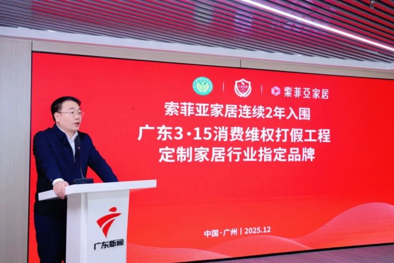 广东3·15组委会新闻发言人郭成华表示,2026广东315消费维权打假工程共计收到5586家企业的有效申报材料。通过层层遴选和专家严格评审,索菲亚家居连续两年成功入围。消费是拉动经济增长的第一动力,品牌是高质量发展的重要象征。广东作为改革开放的前沿阵地,肩负着打造高品质消费环境、培育世界级品牌集群的重要使命。而消费维权打假工作正是守护消费安全底线、筑牢品牌根基的关键一环。