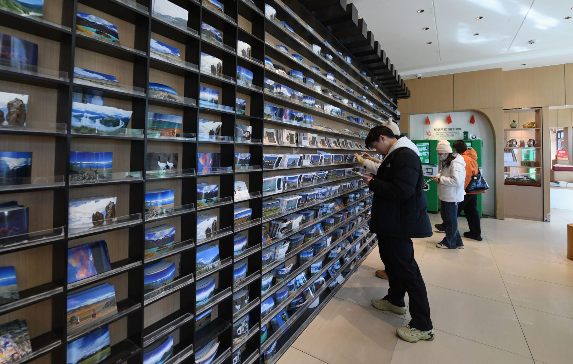 图为游客在邮局挑选明信片。记者 唐斌 摄