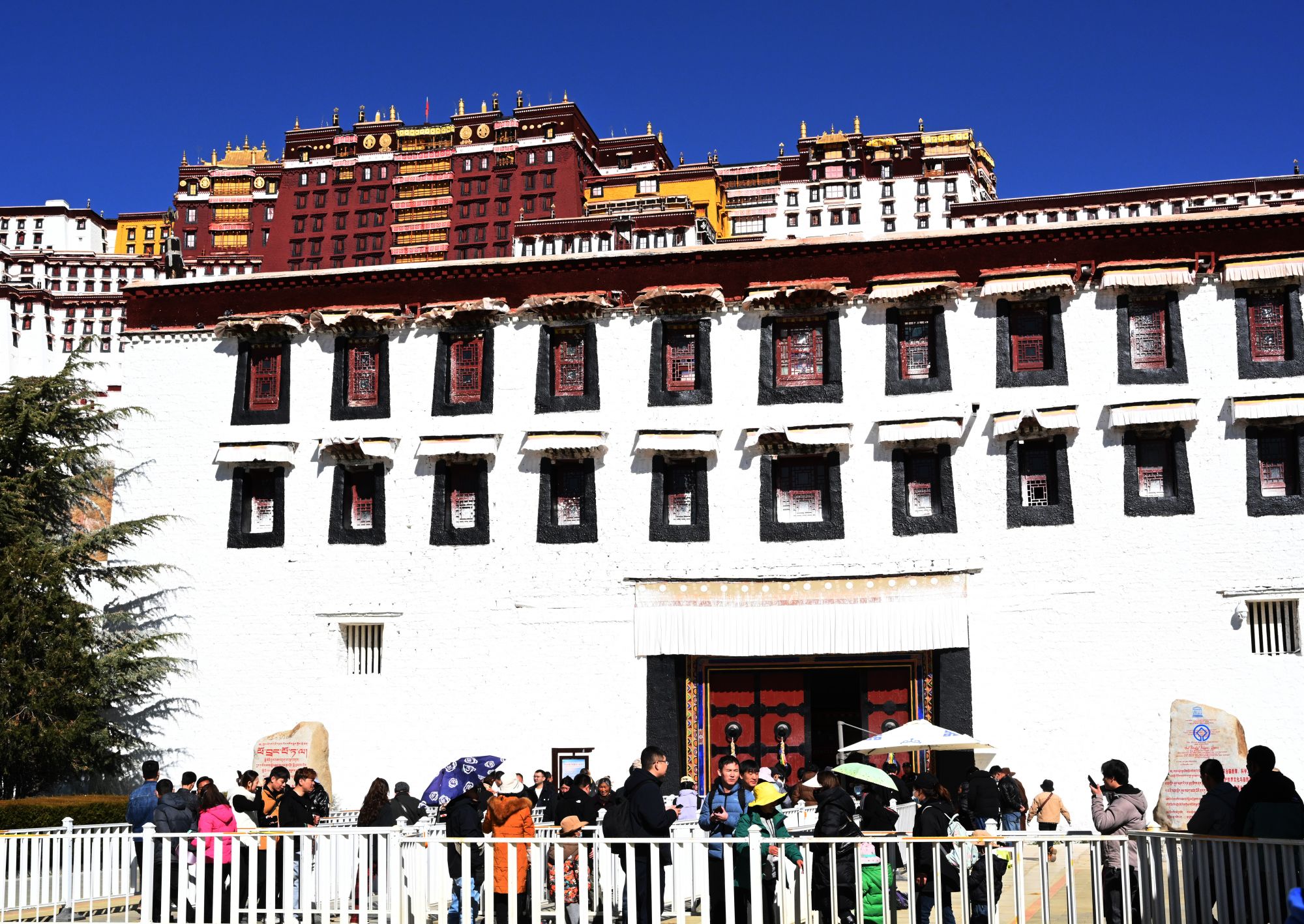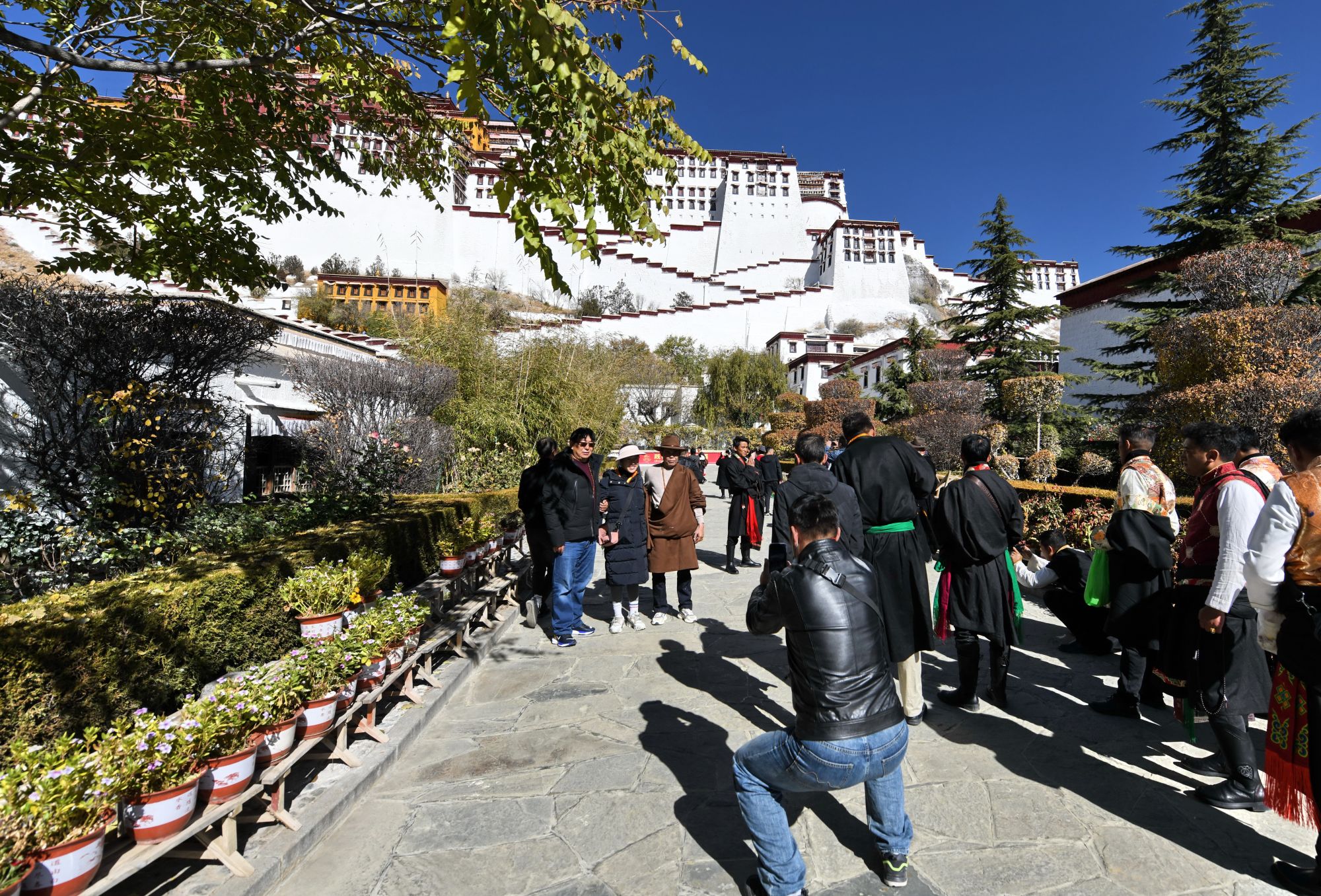 图为游客正在游览布达拉宫。记者 旦增兰泽 摄