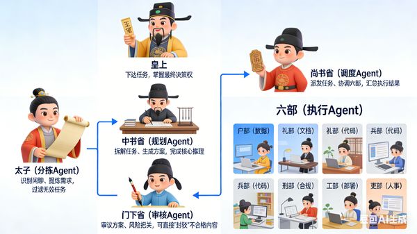 这不仅是一次技术落地,更是一次中国文化与 AI 技术的深度融合 —— 用户在体验高效 AI 协作的同时,也能直观感受古代官场 “分权制衡、各司其职”的治理智慧。