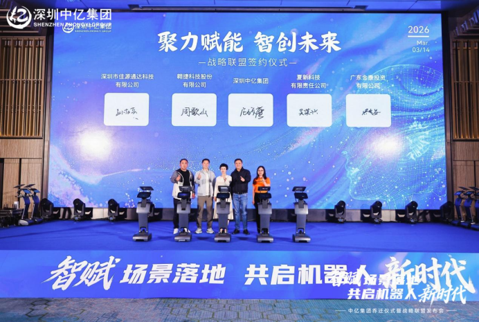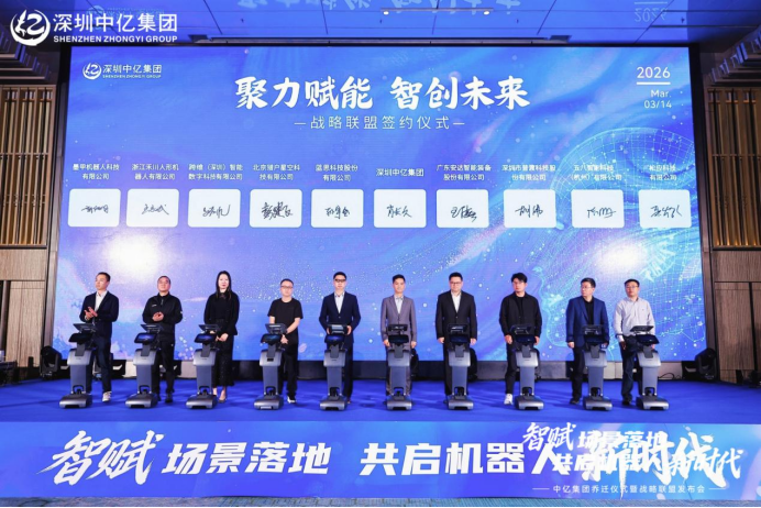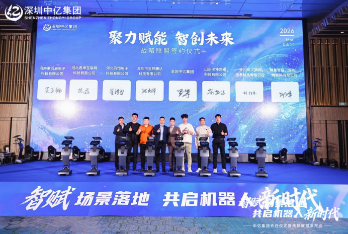 3月14日,深圳中亿集团乔迁暨战略联盟发布大会在深圳市南山区李宁中心举行。大会以"智赋场景落地·共启机器人新时代"为主题,集中呈现中亿集团在机器人超级连接、群体智能调度平台及产业生态合作方面的阶段性成果,并正式发布机器人产业生态合作计划。