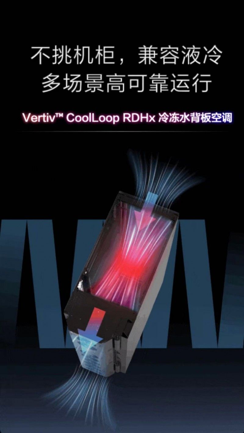 “伴随 AI 服务器向液冷技术的加速演进,如何高效处理空气侧的‘残余热负荷’成为关键挑战。Vertiv™ CoolLoop RDHx冷冻水背板空调采用紧凑的零占地设计,与液冷系统实现无缝‘风液协同’,为高密度算力环境提供高效、极简且具备卓越扩展性的热管理方案。”