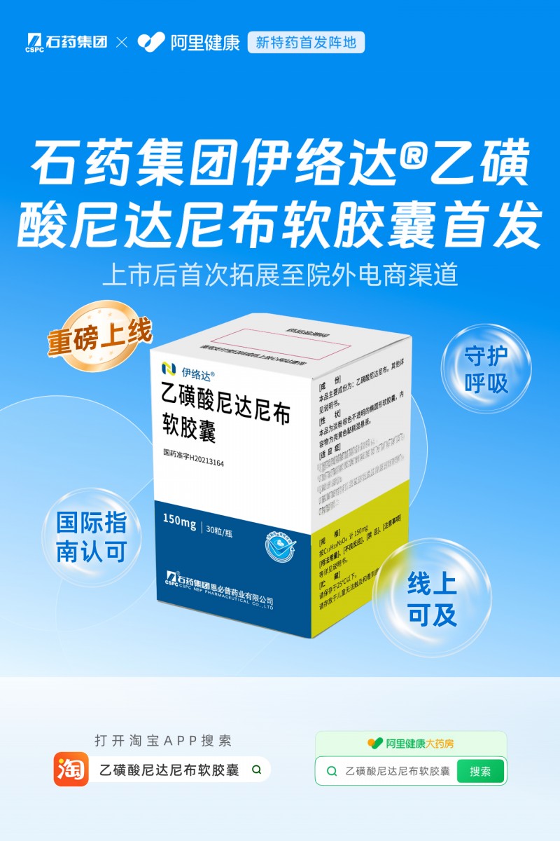 伊络达®乙磺酸尼达尼布软胶囊是石药集团在呼吸疾病领域布局的核心产品之一,自上市后迅速惠及大量患者,首次在电商平台上线,是石药集团拥抱“互联网+医疗健康”新业态、深化患者服务的关键一步。针对伊络达®这类需长期用药的产品,阿里健康作为“新特药首发阵地”将通过全周期慢病管理体系、便捷配送网络等组合服务,切实提升患者的治疗依从性。平台致力于成为药企的数字化肩膀,让每一款新特药不仅有首发的高度,更有可及的温度。