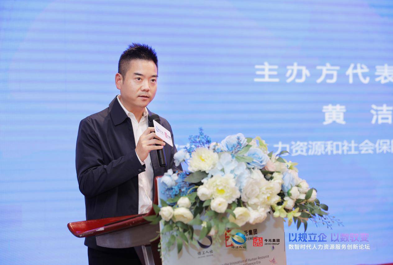 活动伊始,锦江区人力资源和社会保障局党组成员、副局长黄洁代表主办方致辞。他指出,人力资源是区域经济发展的核心要素,锦江区正着力打造人力资源服务产业高地,鼓励企业在合规经营的基础上,积极拥抱数智化转型,提升人才管理效能。他对今元集团承办本次论坛给予高度肯定,希望通过此类行业交流平台,搭建政企沟通桥梁,助力企业破解发展难题,推动区域人力资源服务产业创新升级。