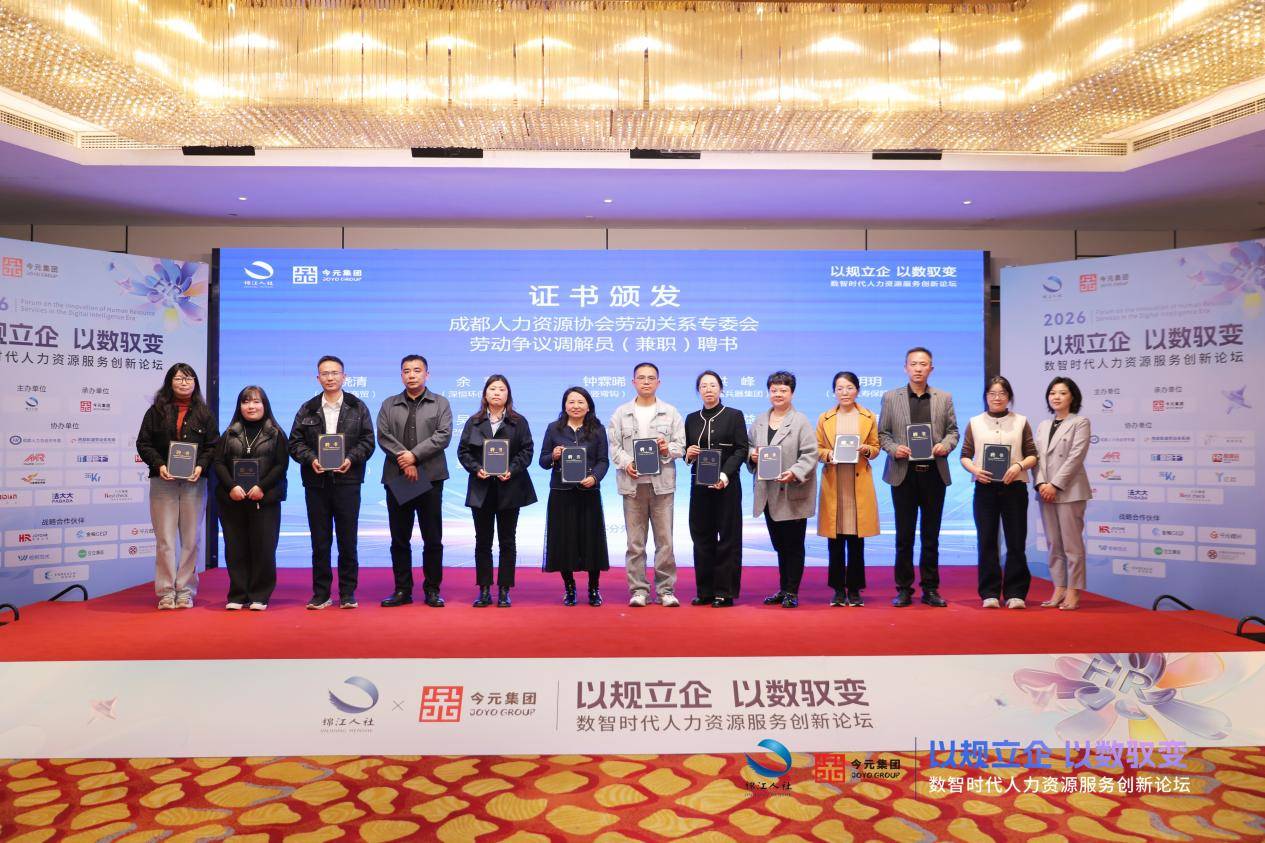 2026年3月12日,由锦江区人力资源和社会保障局主办、今元集团承办,成都人力资源协会劳动关系专委会等多家单位协办的“以规立企 以数驭变”——数智时代人力资源服务创新论坛在成都成都顺利落幕。本次论坛紧扣“合规筑基、数智赋能”核心主线,汇聚政策监管专家、行业领军者、企业HR管理者及专业从业者,深度探讨数字化浪潮下人力资源管理的转型趋势、核心挑战与破局路径,为西南地区人力资源服务行业高质量发展注入强劲动能,搭建起政企协同、行业联动、产学研融合的交流合作平台。