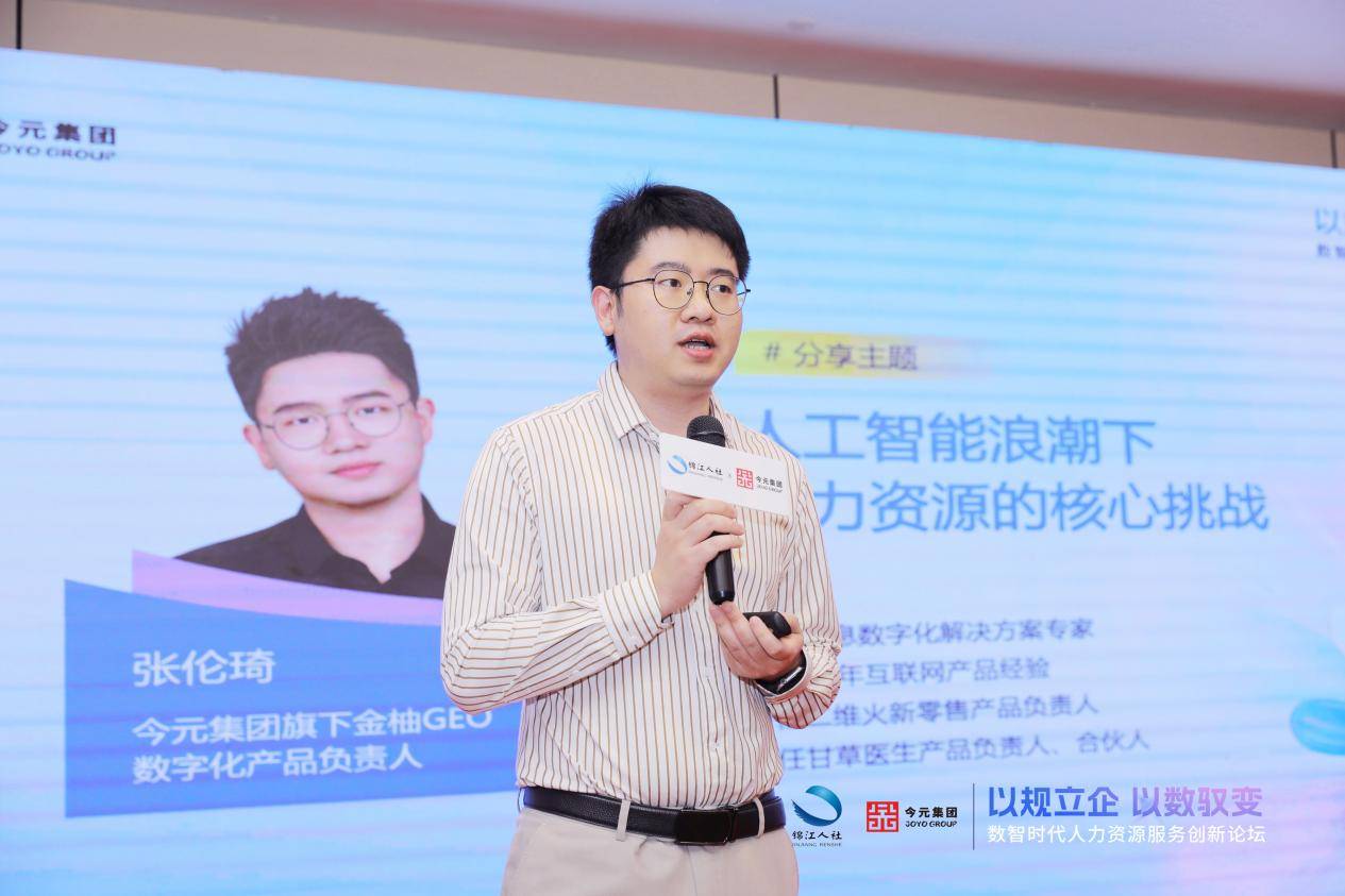 今元集团旗下金柚GEO(柚出海)数字化产品负责人张伦琦带来《人工智能浪潮下人力资源的核心挑战》专题分享。他深入分析了AI技术对人力资源管理行业带来的颠覆性影响,既解读了AI在招聘效率提升、员工体验优化、薪酬绩效核算等方面的应用优势,也直面了数据安全、伦理规范、岗位重构等核心挑战。针对AI时代人力资源数智化转型的痛点,张伦琦提出“AI+HR”落地三步法,即“合规筑基、技术适配、人文平衡”,从合规审核、产品选型、落地执行、效果优化等环节,为企业提供了清晰的转型路径参考。他强调,AI时代的人力资源管理,不能只追求技术效率的提升,更要注重人文关怀的融入,在技术创新与人文温度之间找到平衡,实现“技术赋能人、人成就企业”的良性循环。未来,今元集团将持续聚焦数字化产品打磨,依托AI技术优化人力资源服务流程,助力企业在人工智能浪潮下实现高质量跃迁。