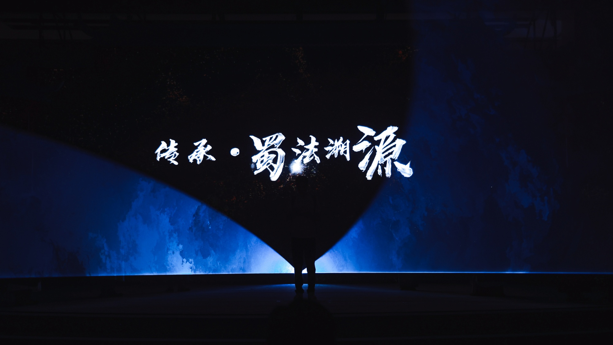 舞台剧尾声,六位先贤并肩而立,汪国伟举起手中的《名录》,面向观众,高喊:“蜀法之光,川流不息。”