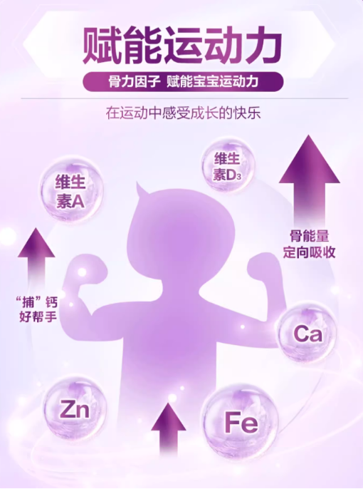 在配方方面,君乐宝至臻A2奶牛奶粉也不含糊,从骨骼力、自护力、认知力、吸收力、“睛”彩力这5大方面关注宝宝健康成长。其中骨骼力方面,添加了OPO结构油脂、酪蛋白磷酸肽CPP与钙,三种成分合理配比;自护力方面,含有乳源六大HMOs、活性蛋白OPN ,添加五种核苷酸,关注宝宝自身力 ;同时,还添加DHA、ARA、叶黄素、硒、维生素A等多种关键营养素,配方多维,关注宝宝脑体双优[4]!