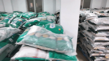 3月16日,在北大荒集团黑龙江格球山农场有限公司农业科技服务中心,工作人员在搬运配方肥料。新华社发(陆文祥 摄)