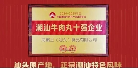 2025年8月,在中国潮汕牛肉丸产业发展论坛上,经行业专家多维度评审,海霸王从原料品质、制作工艺、食品安全、市场口碑等方面脱颖而出,荣获“潮汕牛肉丸十强企业”称号,成为行业规范化发展的标杆企业之一。