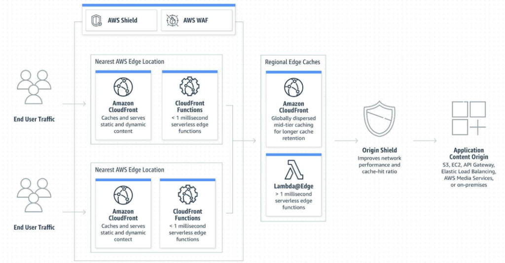 集成 AWS 安全性: CloudFront 直接与 AWS WAF 和 AWS Shield 集成,提供强大的 DDoS 防护和应用级安全性。