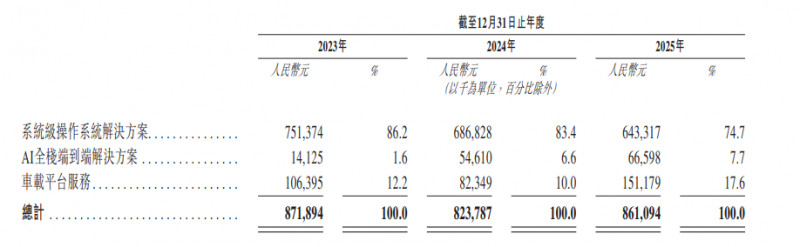 招股书显示,斑马智能具备原生AI技术的智能座舱,构建起三类核心业务:系统级操作系统解决方案、AI全栈端到端解决方案和车载平台服务。