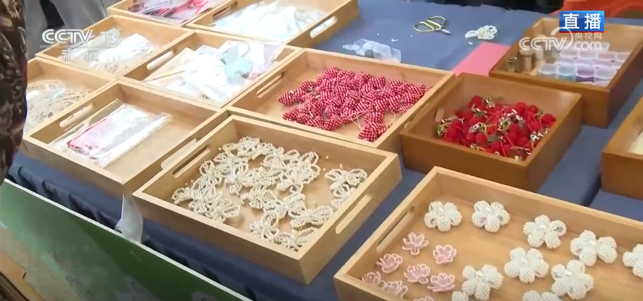 游客多了,村里办起了特色市集。这个叫珠绣,是萧山当地的非遗项目。代表性传承人正利用以珠子、亮片等绣出各种图案,这款李花造型的小挂饰就别具特色。现场还有许多李花美食,比如李花酥、李花糕,漂亮精致。这款李子饮是返乡创业的年轻人开发的,尝一口,有李子的清甜,很爽口。