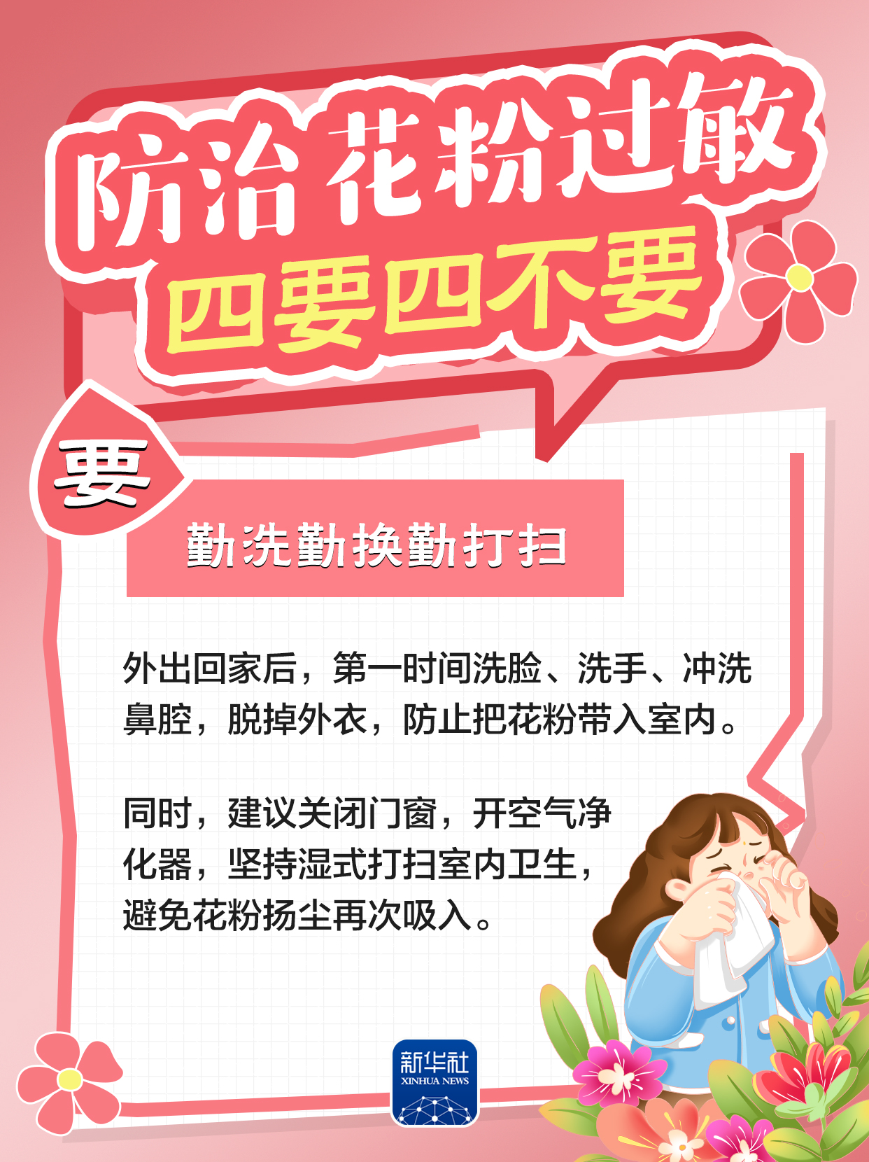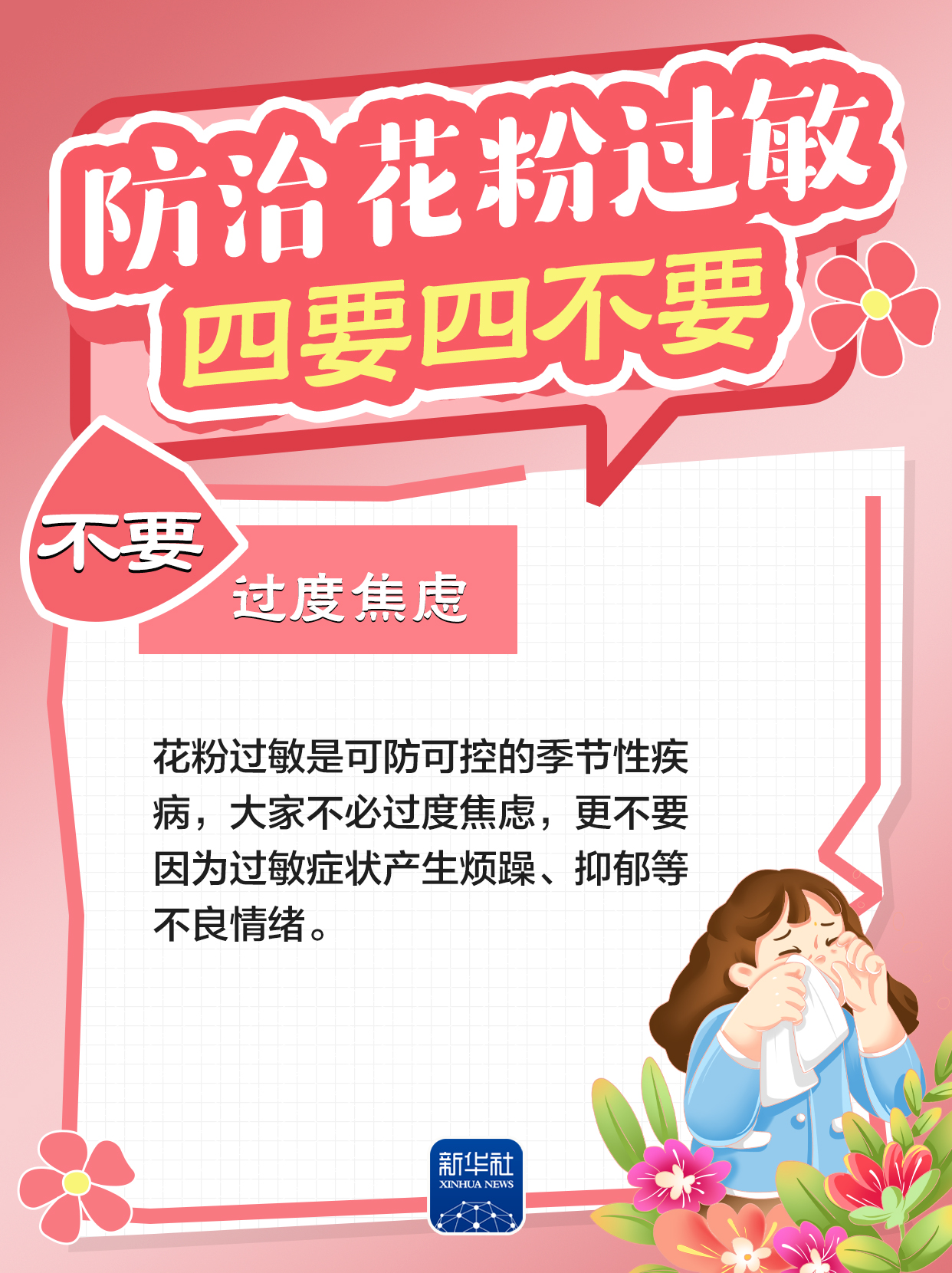 春天到来,气温回升、草木萌发,春季花粉过敏也进入高发时段。对过敏人群而言,如何预防花粉过敏?怎样加强科学防护?我们根据国家卫健委、北京市疾病预防控制中心等部门发布的相关提示,梳理了防治花粉过敏的“四要四不要”,跟随海报一起了解。