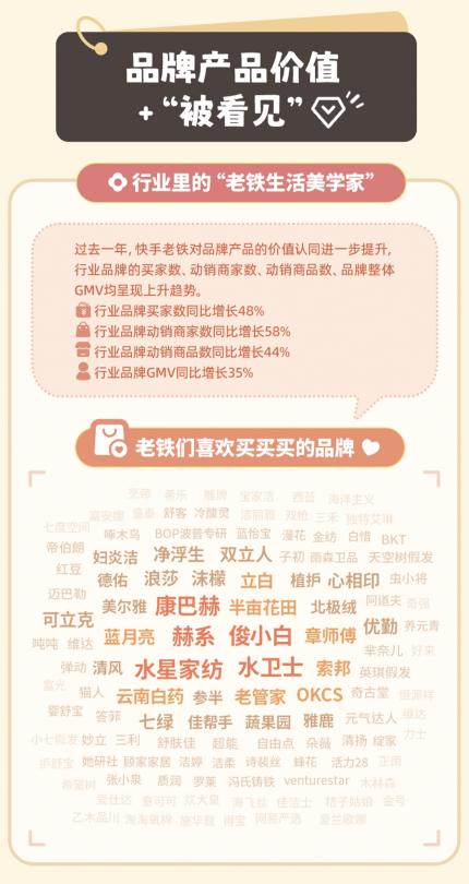 2025年,个护日百行业的品牌买家数同比增长48%,品牌商家数同比增长58%、品牌商品数同比增长44%,品牌整体GMV同比增长35%。这组数据意味着,老铁们不再满足于“能用就好”,而是愿意为品牌所代表的品质、体验和情绪价值支付溢价。