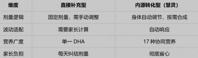 慧灵以高纯度植物源α-亚麻酸为前体,让肝脏根据学生每日脑力消耗“按需合成”DHA。这正是安徽省卫健委引用的研究所指出的:ALA作为前体,对于摄入缺乏的人群可以起到代偿作用。