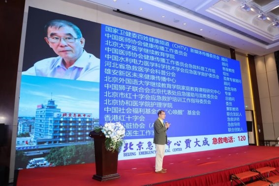 中国急救普及教育先行者贾大成,这位被誉为“中国急救普及第一人”的七旬长者,在《脑出血危险因素识别》发言中,以其近50年的急救生涯积淀,为现场带来一场直抵人心的分享。