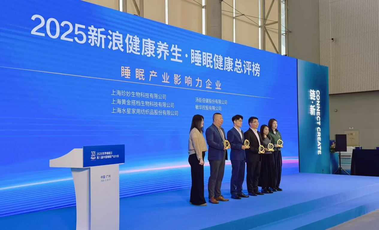 2026年3月18日至21日,由中国睡眠研究会主办的“2026世界睡眠日第八届中国睡眠产业大会暨睡眠生态展”在广州举行。上海黄金搭档生物科技有限公司再次荣获新浪健康养生睡眠年度总评榜“2025睡眠产业影响力企业”称号,这是公司连续第二年获此殊荣。