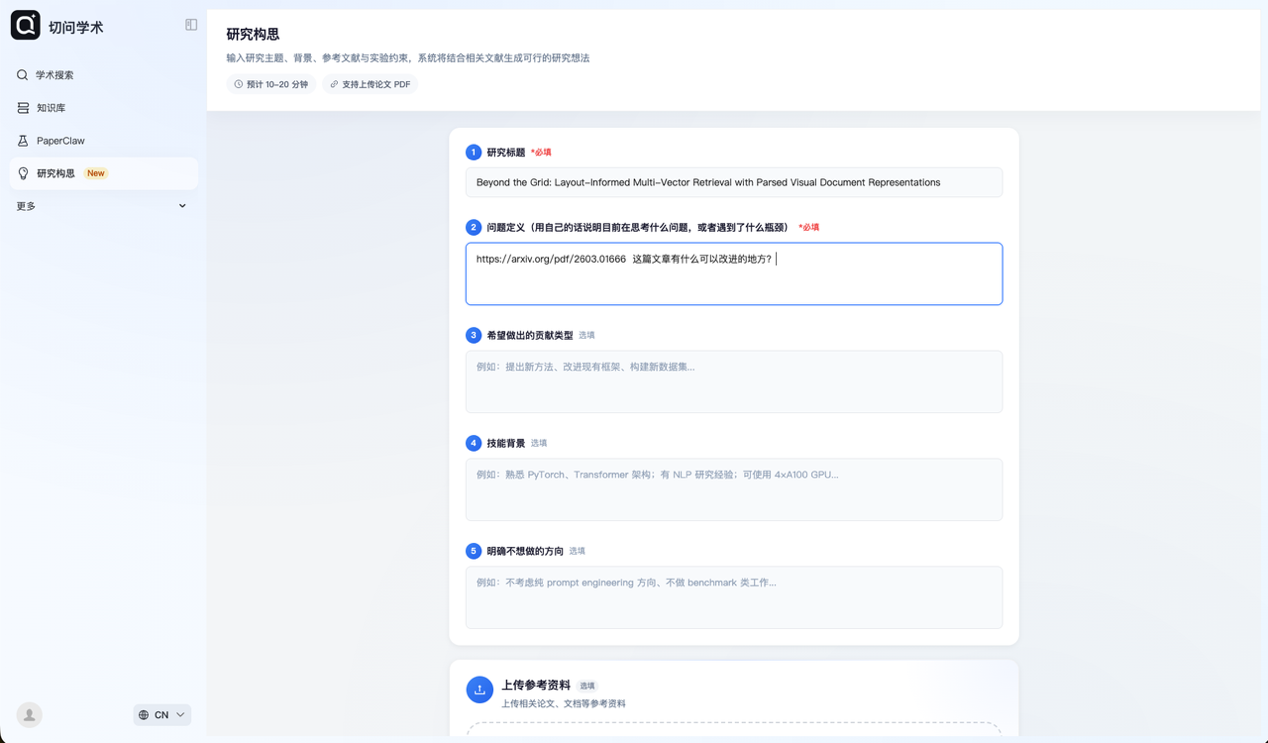 切问学术正在科研的最深处重构人机关系,它的终极愿景是让科学家回归本质,成为“定义问题的人”,将确定性的、重复的认知劳动彻底外包给算力,将不确定的、闪耀的灵感发现交还给人类。同时,切问学术抹平了信息差与代码能力壁垒,让有绝佳Idea的学者,不再受困于工程实现的短板。