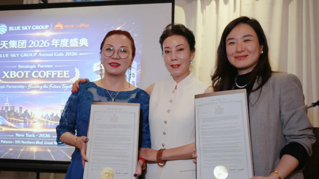 在闪耀纽约咖啡节的同时,XBOT的北美商业版图也迈出了实质性的一步。3月11日,蓝天集团2026年度盛宴暨 XBOT Coffee纽约推介晚会隆重举行。活动现场,影智科技与蓝天集团正式签署战略合作协议。双方宣布将依托各自核心优势实现资源互补:蓝天集团将凭借其在美国本土成熟的运营网络与市场资源,为XBOT的渠道拓展与品牌落地提供全方位支持;影智科技则输出卓越的技术研发实力与优质产品。此次强强联合,标志着双方将围绕具身智能科技在零售、商业地产等领域的应用展开深度协作,共同打造智能咖啡在北美的示范性商业场景。