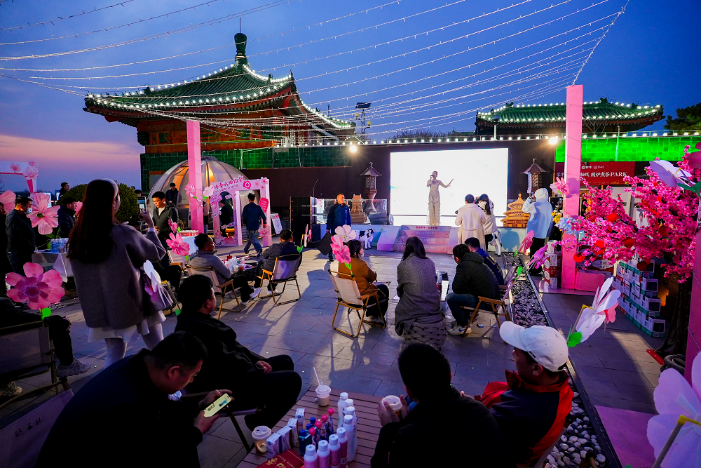 当晚,启幕仪式在观坛艺术空间露台举行。观坛国风乐团以民乐《春日奇迹》拉开序幕,古筝与笛箫交织出春日的韵律;青年歌手随后献唱《火红的萨日朗》《如愿》等歌曲,传统与现代旋律交融,现场气氛热烈而温馨。