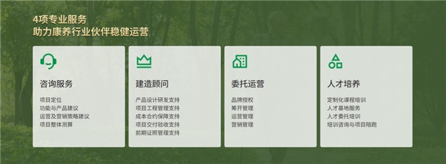 值得一提的是,椿萱茂还将为合作伙伴提供咨询服务、建造顾问、委托运营、人才培养四项专业服务。每一项服务,都是椿萱茂十余年经验的沉淀,是对行业伙伴的真诚托举,更是为了让更多70-80岁老人实现高品质养老的梦想照进现实。