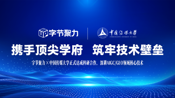 作为始终专注于以AI和数据驱动的科技型营销公司,字节聚力(北京)科技有限公司近日正式与中国传媒大学达成科研项目合作。双方将围绕AIGC核心技术与GEO理论体系展开为期五年的深度研究,共同推动AI营销技术的标准化与行业规范化。