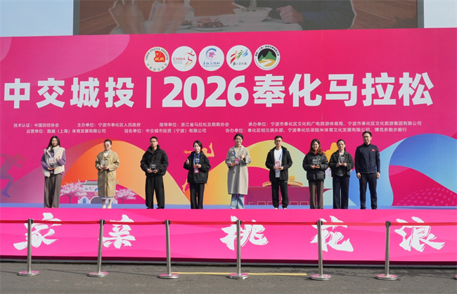 (图为市舶士领取2026奉化马拉松赞助商奖牌)