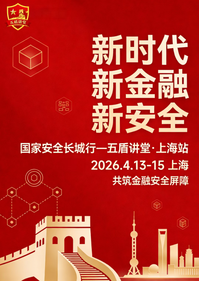 新时代 新金融 新安全 国家安全长城行 — 五盾讲堂・上海站活动,将于2026年4月13日 —15日在上海举办。