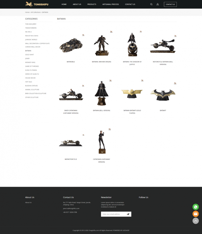 • 铜质文创产品 —— 作为核心业务,涵盖装饰摆件、铜雕画及具有文化价值的艺术雕像,采用传统失蜡铸铜古法制作;亦有推出自研IP及授权IP的产品,比如《复仇者联盟》、《功夫熊猫》、《蝙蝠侠》系列等。
