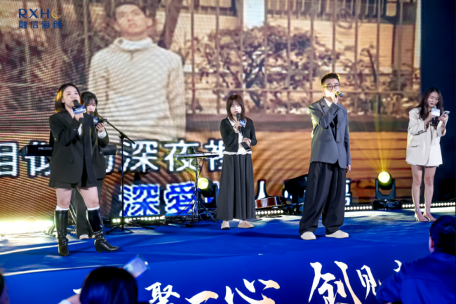 融信海创的员工代表们,则带来了一场深情的演唱。他们的倾情献唱传递了真挚的心声,将现场气氛推向了最炽热的顶点。在悠扬的歌声中融信海创全体伙伴的心都紧紧地连在了一起,共同感受着温暖和力量。