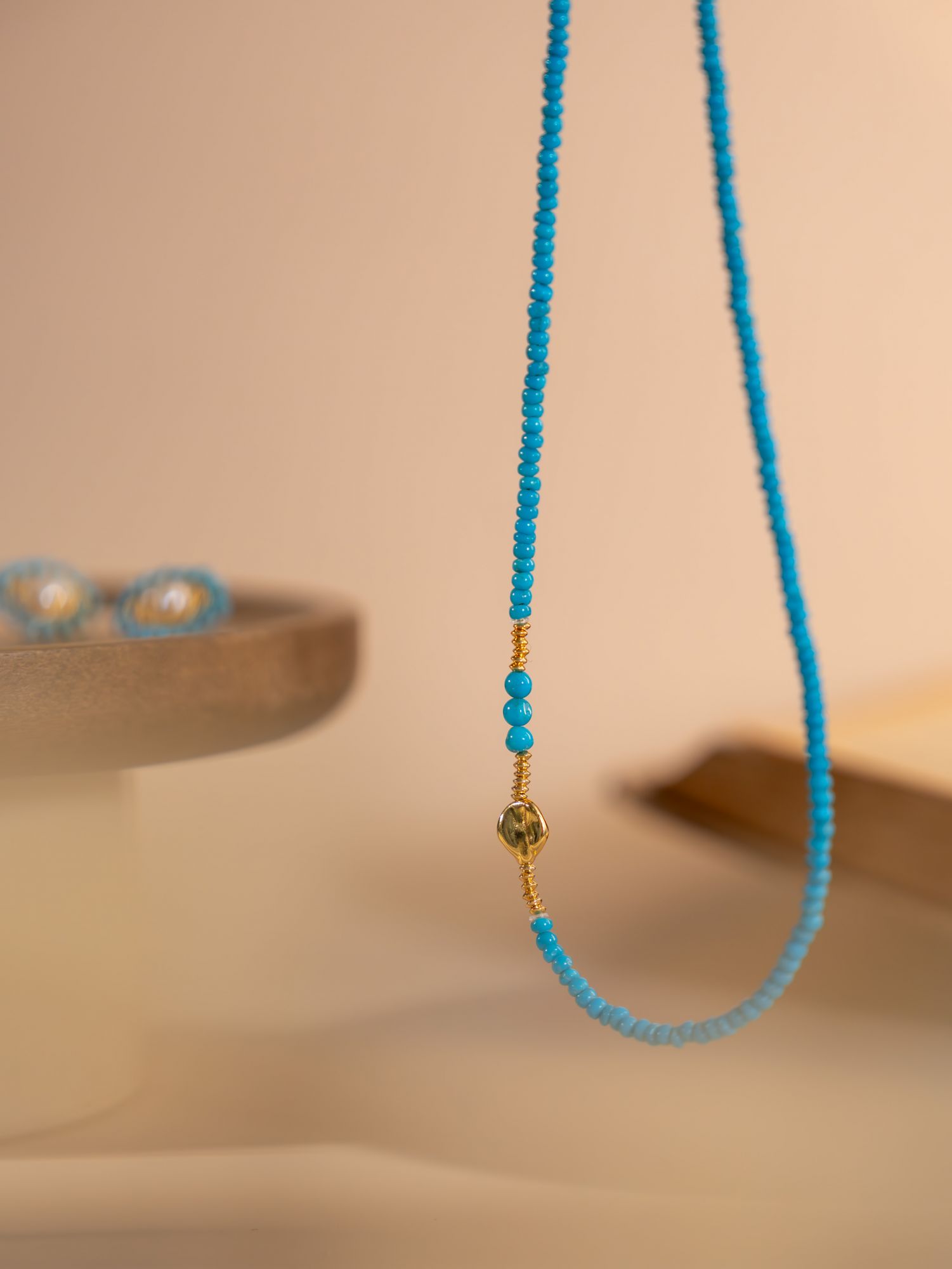 春季layered look的精髓,在于层次丰富却不显累赘,这正是“那不勒斯-岩石季风项链”的设计初衷。该项链甄选高瓷质地的亚利桑那美松,通过精湛工艺呈现出独特的“双面光泽”效果,相较于传统圆珠款,薄款设计更具现代几何美感,同时贴合颈部线条,带来几乎“零感”的佩戴体验,完美契合春日轻饰搭配的需求。