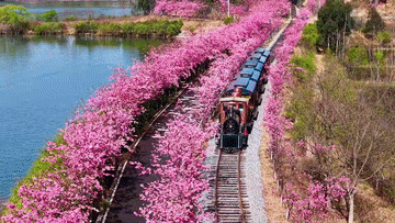 在昆明市寻甸县,千亩樱花次第绽放。当地探索“赏花+”业态,构建起多元消费体验。寻甸县凤龙湾景区营销负责人张照丹介绍,今年景区围绕“花”打造的产品主要有三个亮点:第一是游客可以坐着火车或者坐着游船看樱花;第二个是“花+运动”,游客可以选择在樱花大道旁边的生态步道跑步或骑行;第三个方面是“花+餐饮”,景区推出了由花来打造的菜品。