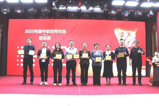 大会对 2025 年度表现优异的市场进行表彰,颁发荣誉奖项以肯定其在市场拓展中的突出贡献;同时为中宏顾问委员颁发聘书,凝聚行业智慧,为企业长远发展建言献策。