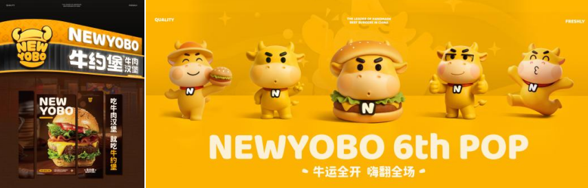 为贴合年轻消费群体的审美与体验需求,牛约堡在2025年六周年之际完成全面品牌形象焕新,以年轻化升级进一步提升品牌吸引力。品牌正式推出“NIUNIU牛牛”IP矩阵,打造牛嘻嘻、牛赞赞等五只拟人化萌趣角色,将品牌标识融入IP设计,不仅应用于包装袋、餐具等餐饮物料,还推出限定盲盒等周边产品,成为年轻消费者打卡、收藏的新选择,成功拉近了品牌与消费者的情感距离。