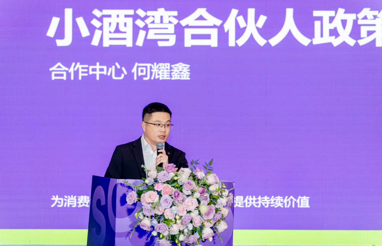 小酒湾项目负责人赖刚、资深连锁企业操盘手,在大会上对小酒湾创新商业模式进行全面解析。品牌以“新口味、新场景、新体验、新方式、新表达”定义新酒饮,采用大师店+社区店1+N模型,大师店打造品牌高度,社区店实现即时触达;线下体验与线上外卖联动,门店净利润率稳定在23%。与传统加盟截然不同,小酒湾坚持真合伙模式:无加盟费、无固定管理费,总部投入10%、合伙人投入90%,资金共管、利益共享、风险共担,从根本上绑定品牌与合伙人利益。