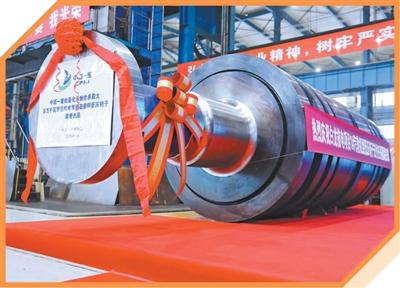 中国一重研制的国产首支自主化标准百万等级常规岛整锻低压转子锻件。李 聪摄(人民视觉)