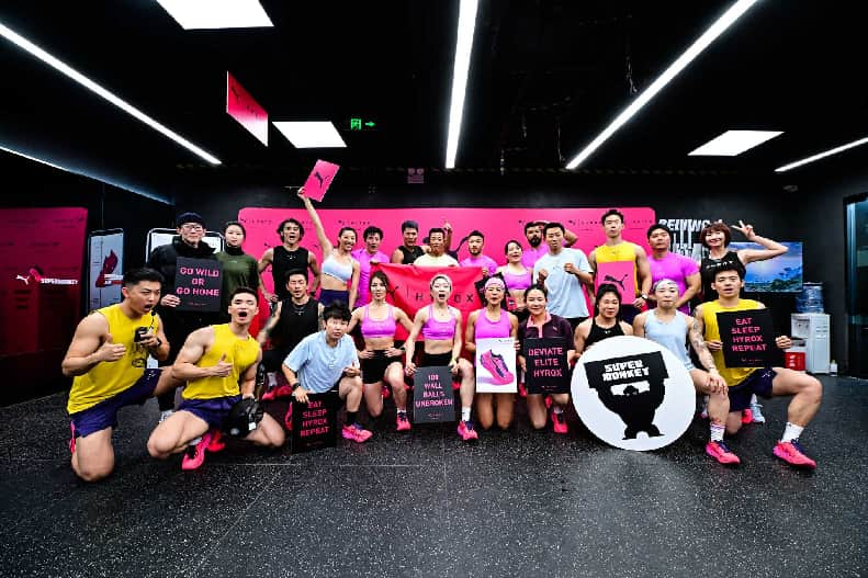 HYROX北京站赛前一周,PUMA联合亚太区域拥有HYROX授权场馆最多的头部健身品牌SUPERMONKEY超级猩猩携手开启了“彪破60”精英课暨彪破精英HYROX定制版新品发布活动,邀请众多彪马战队选手、合作运动员、媒体伙伴和运动达人,在北京共同体验了全球首款专为HYROX打造鞋款在训练中的强劲实力表现,提前为HYROX北京站预热。
