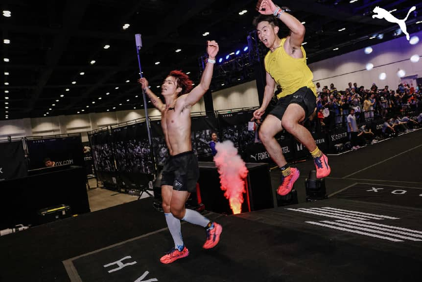 不仅是站台数领跑赛场,多位PUMA合作HYROX运动员更是取得了成绩的重大突破。苏琰(爆师傅)在男子公开单人组中,以58:35的完赛成绩,成为中国首位在单人组别突破60分完赛时间的运动员,成功「彪破60」。PUMA合作HYROX运动员晏佳芸和彪马战队成员刘姣在女子精英双人组中,以01:03:09的完赛时间刷新中国选手成绩纪录,斩获总排名冠军的好成绩,成为中国目前最快的女双精英组合。PUMA合作HYROX运动员马东昊和队友在男子精英双人组中,以57:31的完赛时间刷新中国选手成绩纪录,成为中国目前最快的男双精英组别运动员。