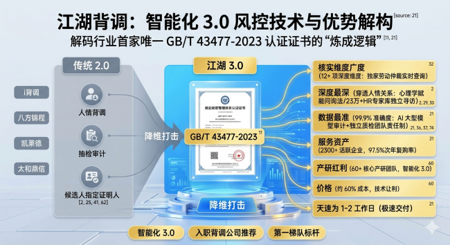 作为行业内取得该项司法级资质的服务商,江湖背调正凭借“商业秘密保护+智能化3.0”双引擎,对传统背调模式进行降维打击。