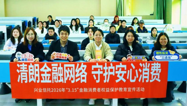 为积极落实福建金融监管局“3·15”金融消费者权益保护教育宣传活动要求,2026年3月12日,兴业信托前往闽江大学举办“3·15权益护航——校园金融安全守护行动”专场教育宣传活动。本次活动以普及金融知识、维护金融消费者八项权益、筑牢反诈防线为核心,为青年学子呈上一堂专业、实用且贴合实际的金融安全课程。