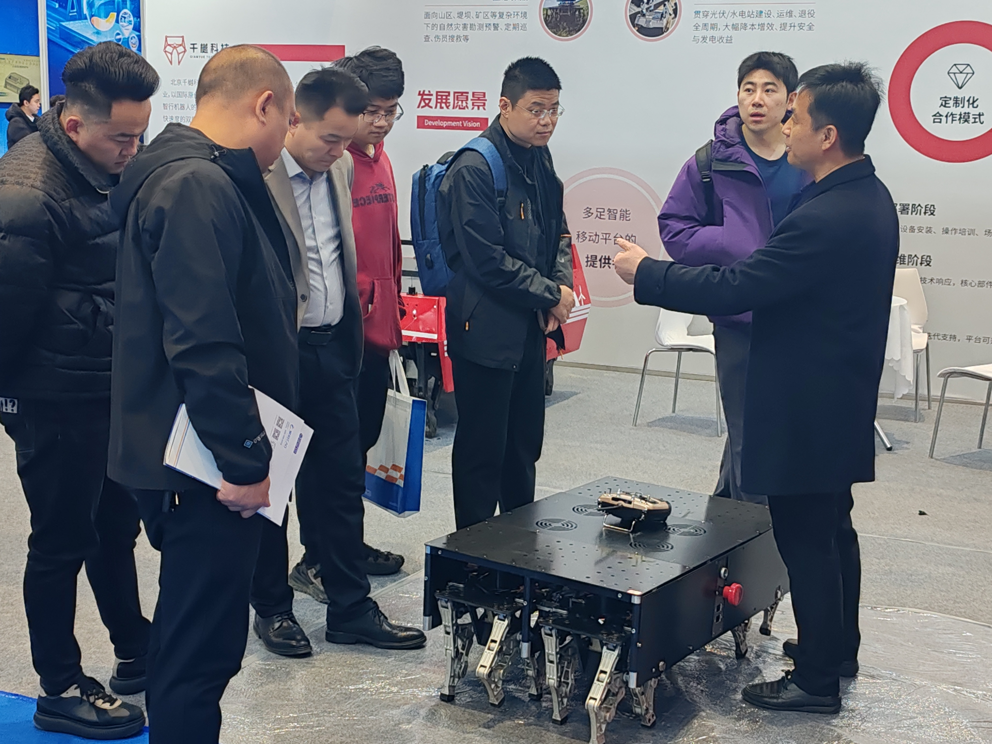 演示区域吸引了来自矿山企业、地质勘探单位、应急管理部门的专业观众。多位参观者表示,当前行业内缺乏能够同时兼顾“重载运输”与“复杂地形通过”的无人装备,千樾科技的铁马系列填补了这一市场空白。