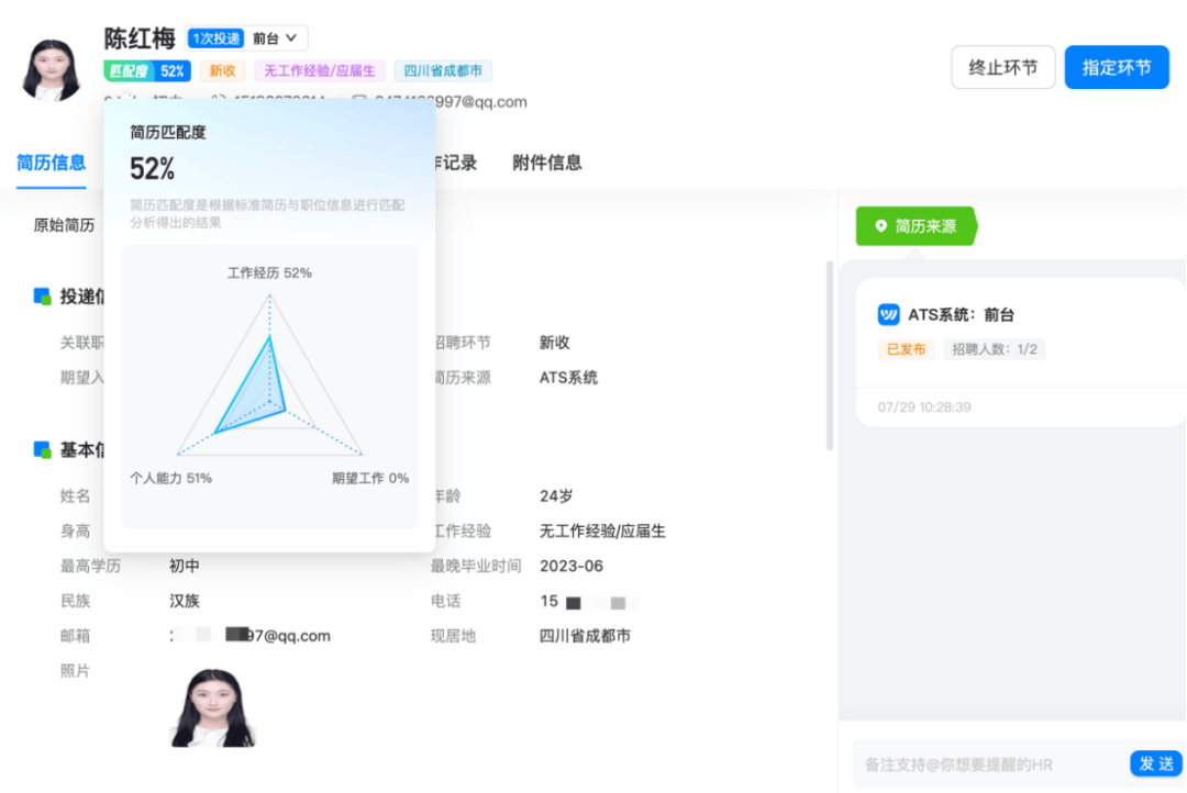 1.人岗匹配评分:精准锁定优质人才,筛选效率提升80%+