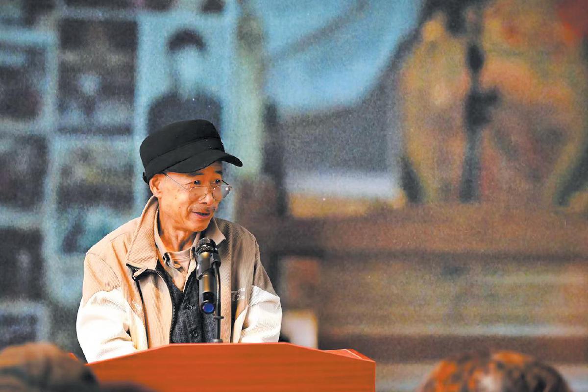 2025年10月22日,周泉虎在自己的生前告别会上发言。 曹梦琪 摄