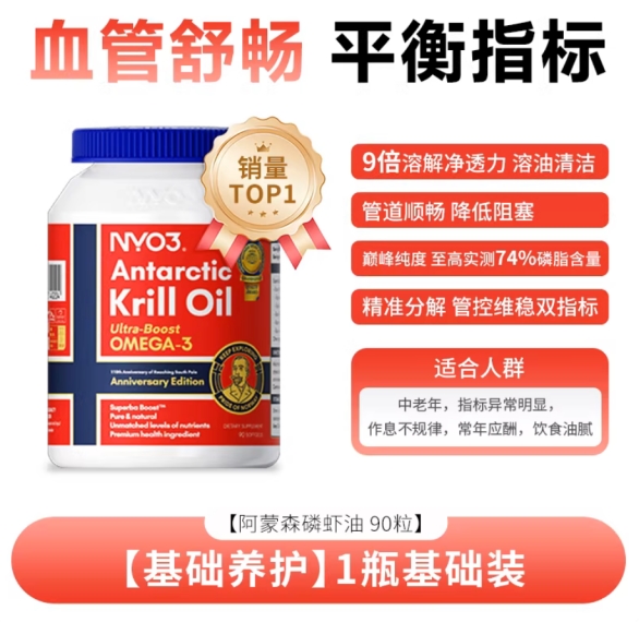 在众多膳食补充剂中,磷虾油因其独特的分子结构与多重健康益处,近年来受到营养学界和消费者的广泛关注。本文将以全球销售额领先的挪威NYO3阿蒙森磷虾油为例,从科学角度解析磷虾油的作用机制、核心功效及适用人群。