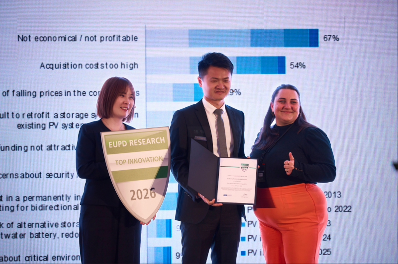 而任何一项能源创新要实现规模化落地,最终都离不开成熟市场的场景验证。欧洲市场以严格的准入标准、成熟的消费体系和完善的能源机制,成为检验光储产品综合竞争力的重要标尺。此次华宝新能 Jackery SolarVault 3 系列表现亮眼,不仅在荷兰 SolarSolutions 展会斩获 “Best Innovation Award” 提名,更荣获 EUPD Research 颁发的 2026 年度 Top Innovation Award,正是其产品创新实力和市场价值获得行业权威认可的有力体现。